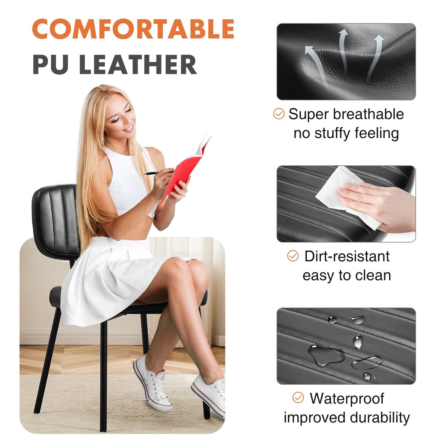 JHK Dining Chairs Set of 2 Ergonomic Lumbar Support PU Leather Foam Sponge Cushion Seat and Metal Legs for Modern Kitchen, Office