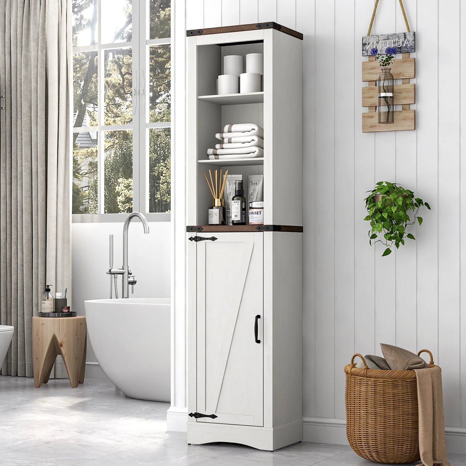 68" Tall Farmhouse Bathroom Storage Cabinet, 5-Shelf Storage Cabinet with Barn Door&Adjustable Shelves, Linen Tower Cabinet