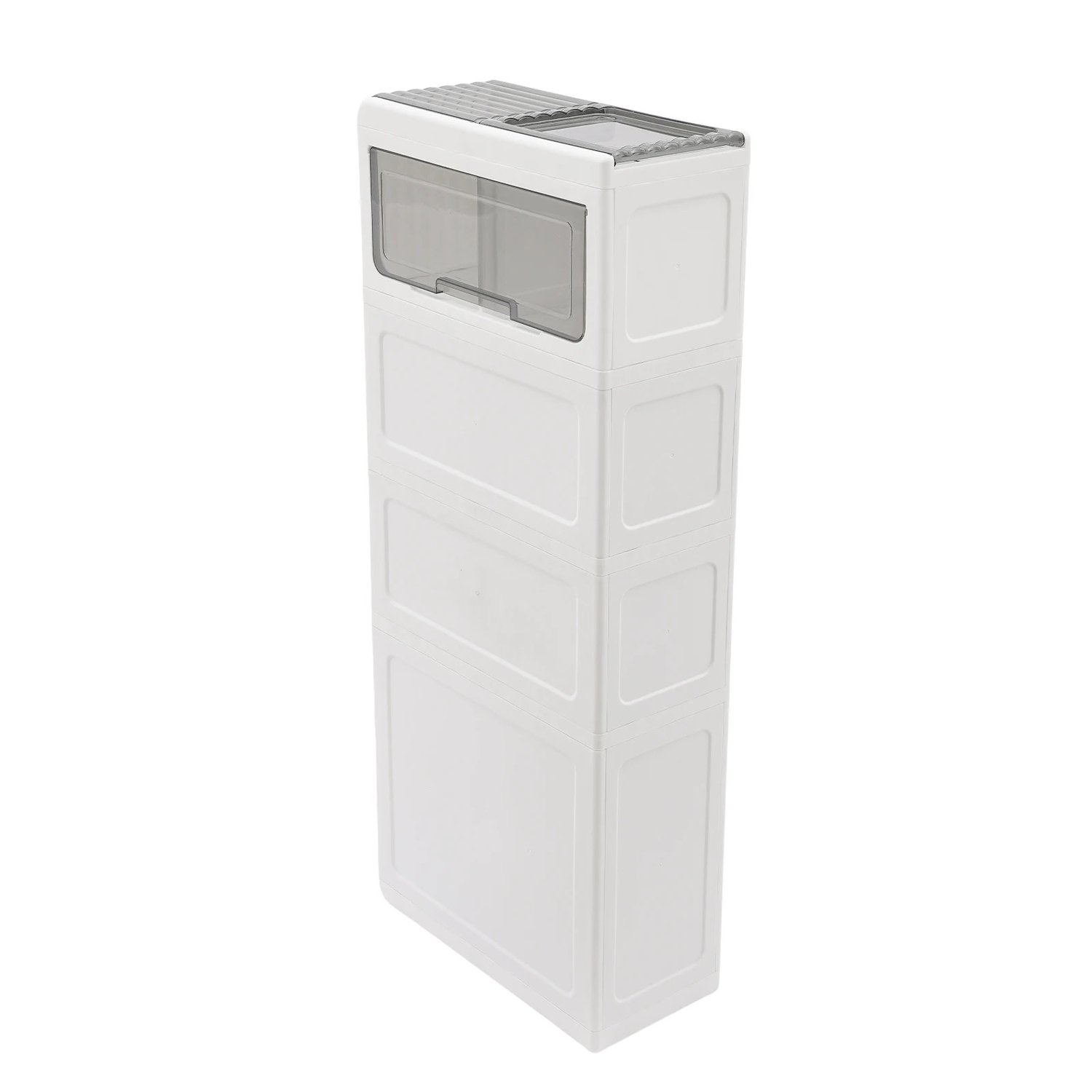 This simple and stylish bathroom floor cabinet offers a great storage solution for your washroom. Made with high-quality PP material, its durable and sturdy construction ensures long-lasting performance. With four spacious tiers and pull-out drawers, this cabinet provides ample space for organizing shower gels, soaps, towels, toilet paper, and other bathroom essentials. Its narrow and tall design is perfect for small spaces, enhancing the efficiency of your bathroom organization.