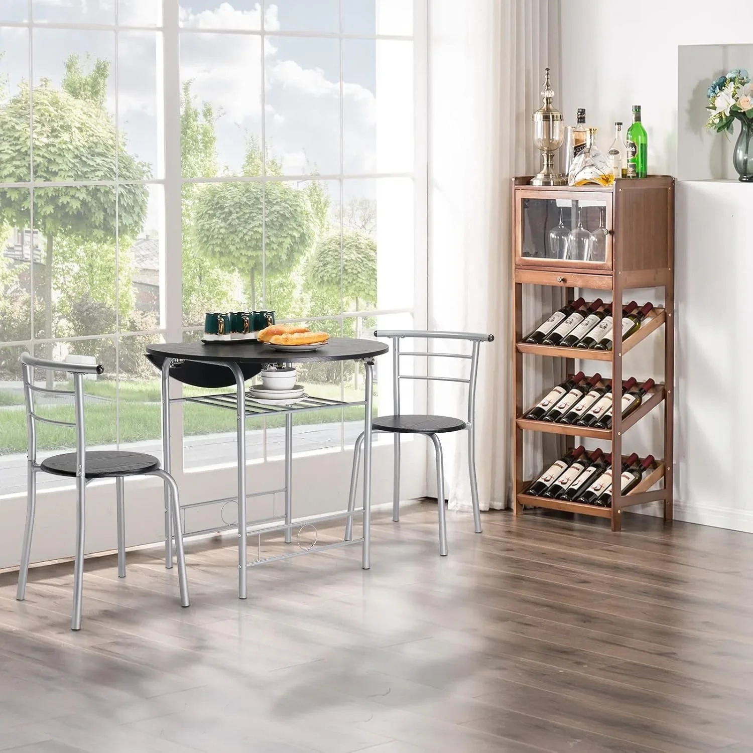 - 【Additional Storage Rack】A convenient wine rack beneath the table top provides a perfect storage solution for placemats, wine bottles, or other daily essentials to make home dining a pleasure within arm's reach,you can grab your napkins or magazines without even getting up from the table.