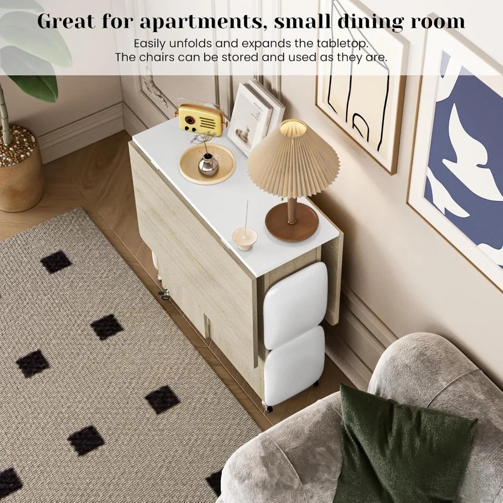 - 🪑【Space-Saving】Folding dining table can be unfolded or stored anytime according to your needs. Fully unfolded, it is suitable for multi-person dining; half unfolded, it can be used as a wall-mounted office; fully folded, it can be used as a decorative cabinet, which is very flexible and maneuverable.