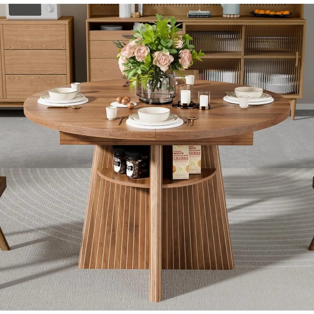 - Extendable Dining Table for 4-8: This extendable round dining table comfortably seats 4-8 people, making it ideal for family dinners, holiday feasts, and casual gatherings. It features a retractable design and smooth, silent rails. By installing a separate extension in the middle of the table, it quickly and easily expands from a 43.3-inch round table to a 59-inch long x 43.3-inch wide oval. The extension stows underneath the tabletop, giving you even more flexibility.