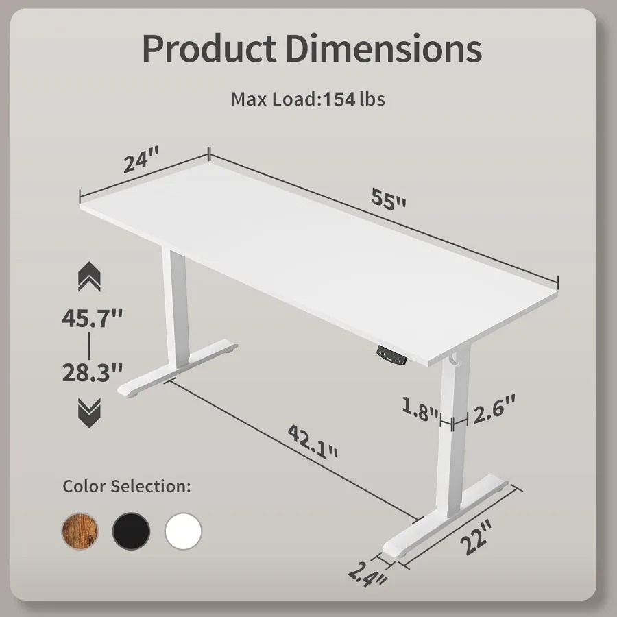 Electric Standing Desk 55 x 24 Inches Height Adjustable Desk for Work Office Home Ergonomic Sit Stand Up Computer Table