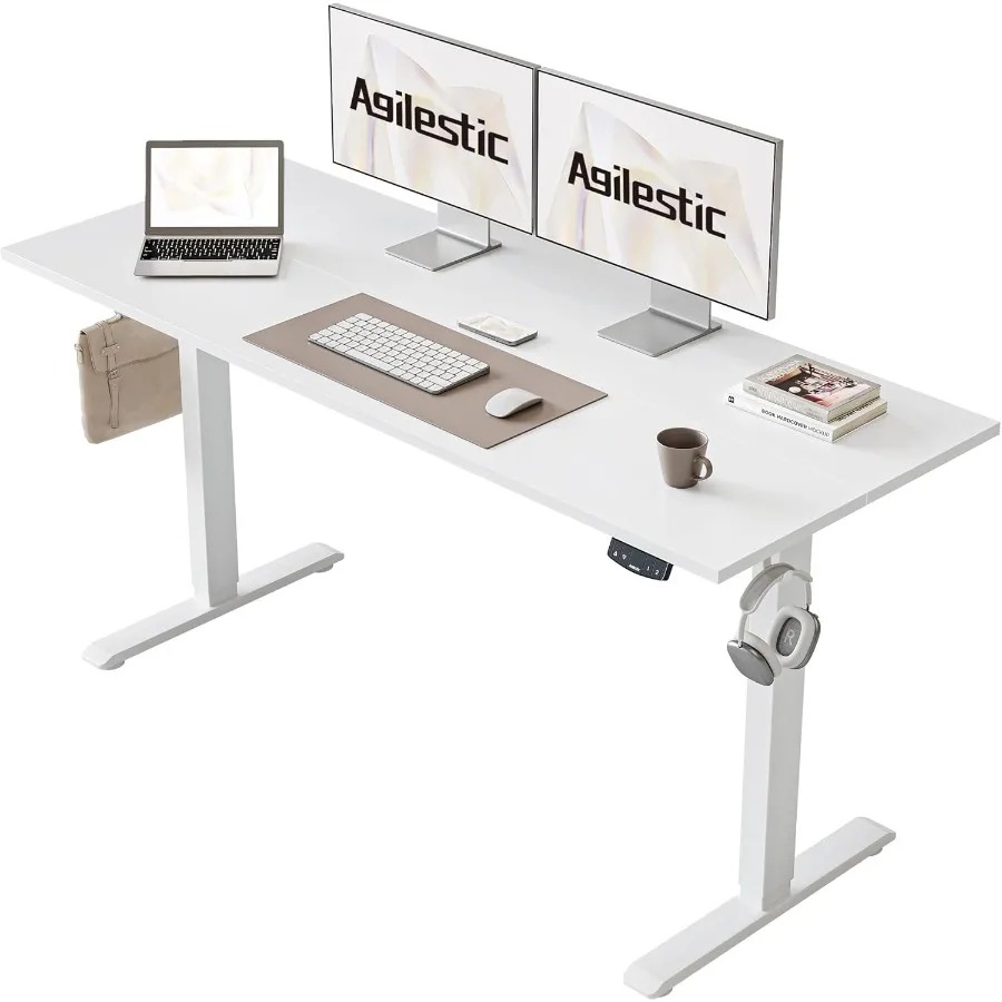 【Suitable for Daily Use】Agilestic's height adjustable desk uses Low-VOC desktop materials that meet federal and state safe air standards. It's equipped with hooks on both sides, making it an easy and convenient choice for daily use.