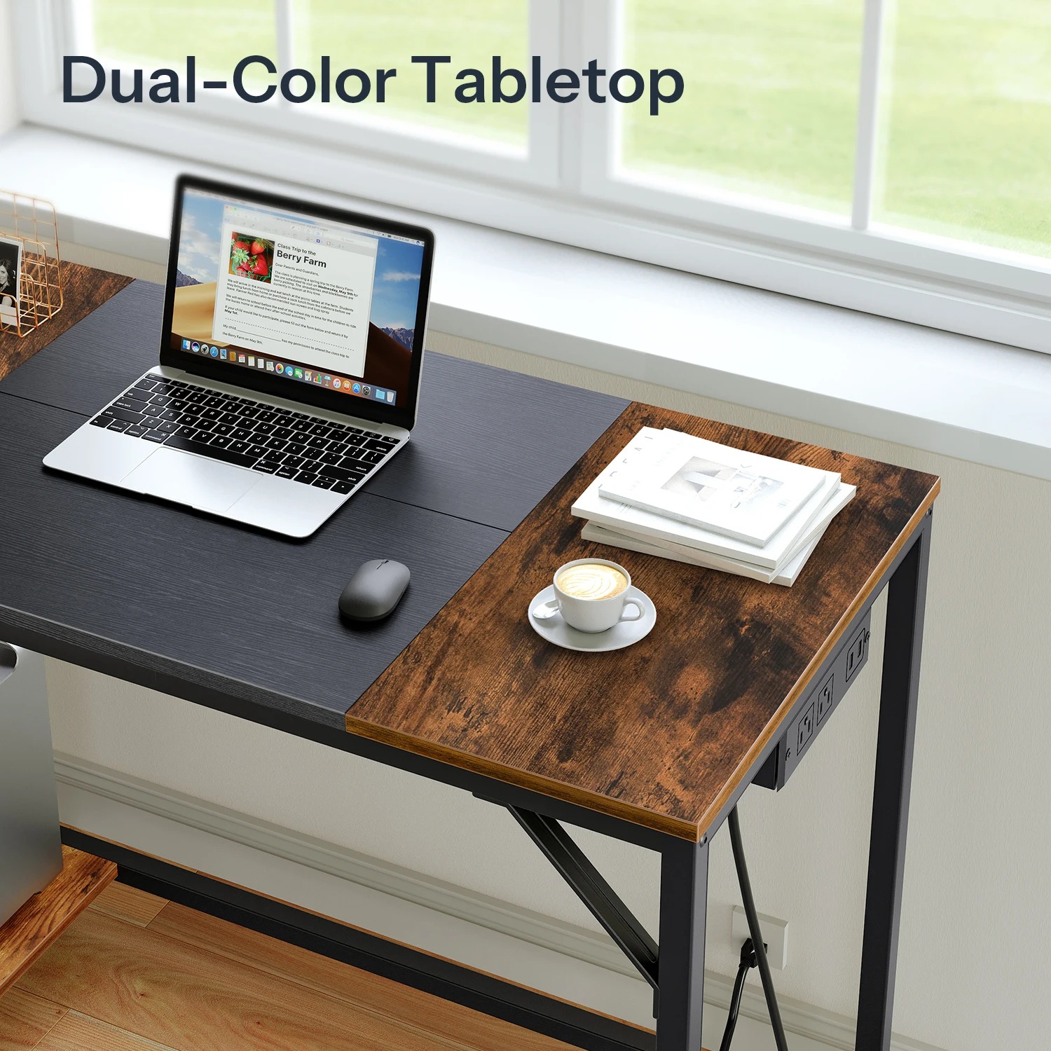 Desk with Charging Station: This computer desk is equipped with a multi-function power strip featuring 2 standard outlets and 2 USB ports, meeting your various charging needs and keeping your electronic devices fully charged at all times