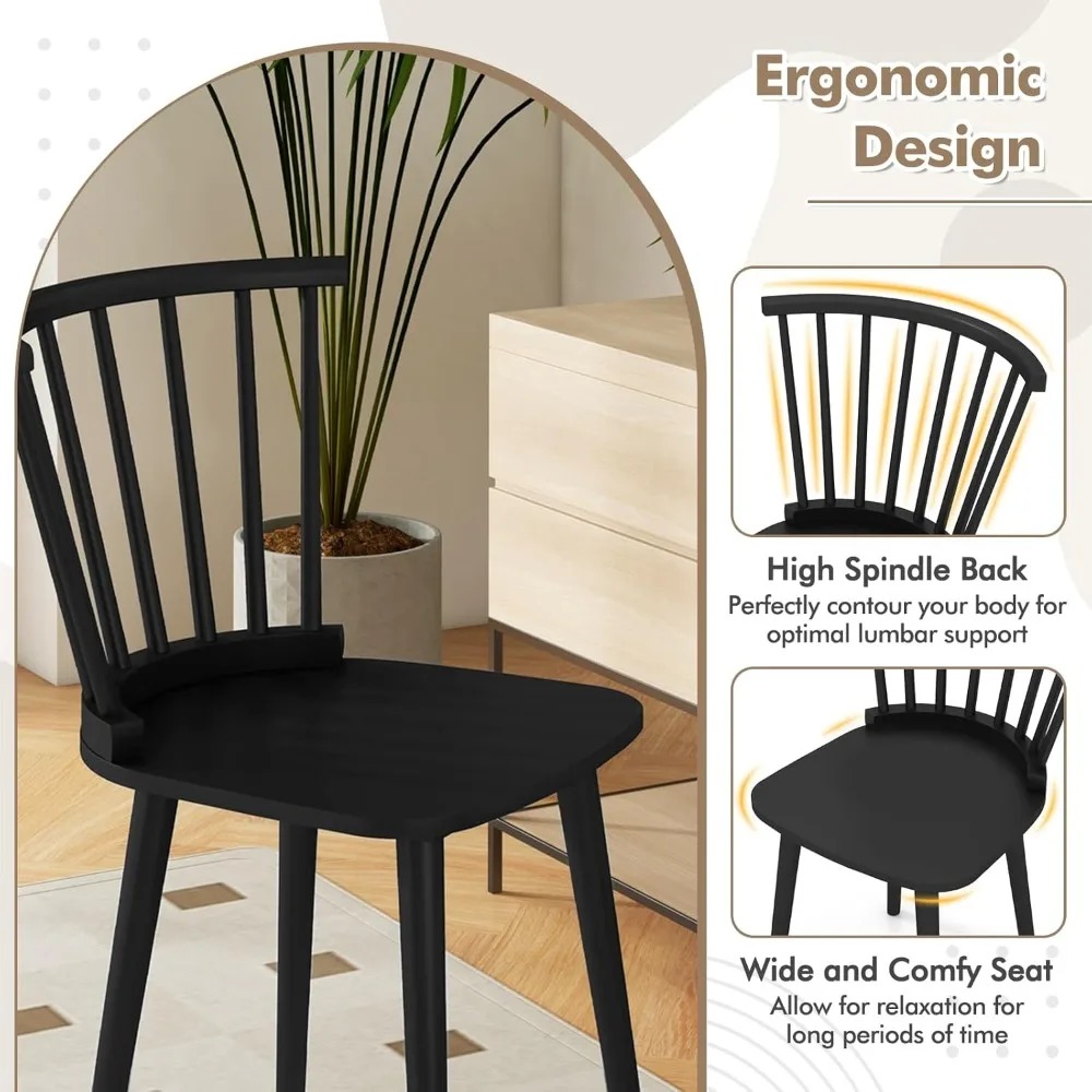 Windsor Dining Chairs Set of 4, Black Wooden Kitchen Chair, American Country Dining Chairs w/Rubber Wood Frame