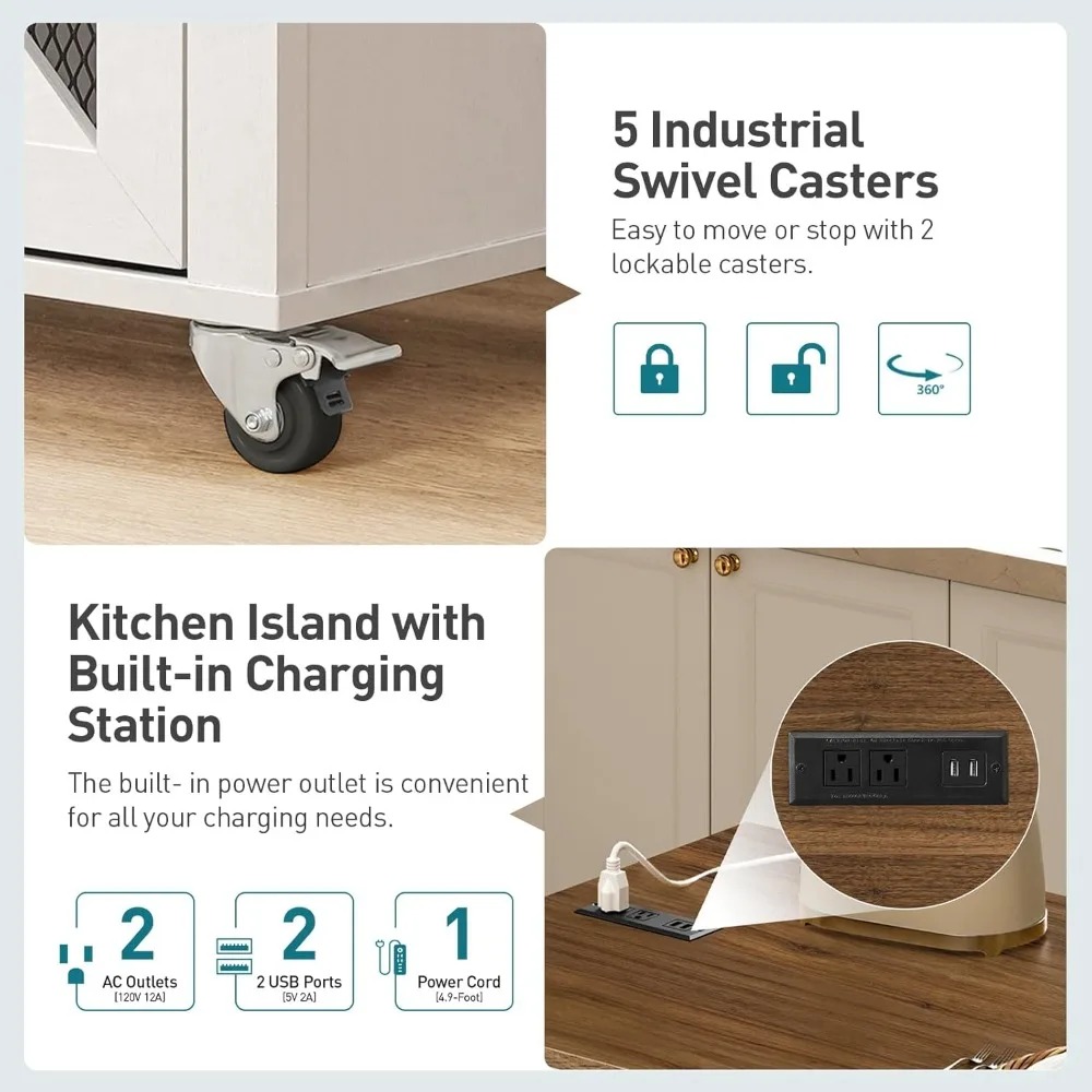 - Convenient Power Access: With a 4.9-foot long power cord, 2 AC outlets and 2 USB-A ports, the kitchen island offers a hassle-free charging solution for your coffee maker, microwave, toaster, and other kitchen appliances, boosting cooking efficiency with ease