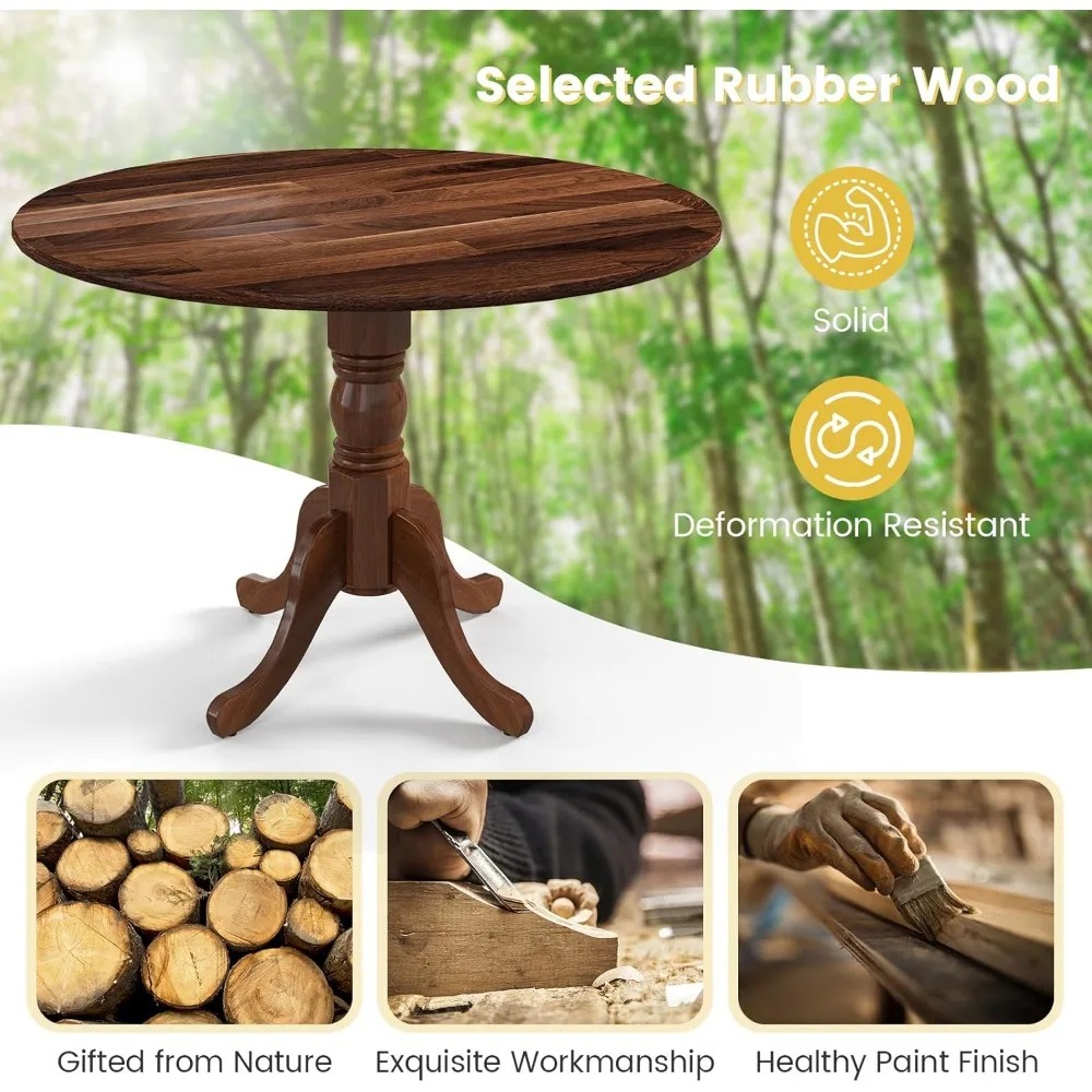 - Solid Wood Table for 4: Crafted with natural rubber wood, the round dining table is solid, not easy to crack and deformation-resistant for prolonged lifespan. Moreover, been through exquisite workmanship, it is smooth and burr-free.