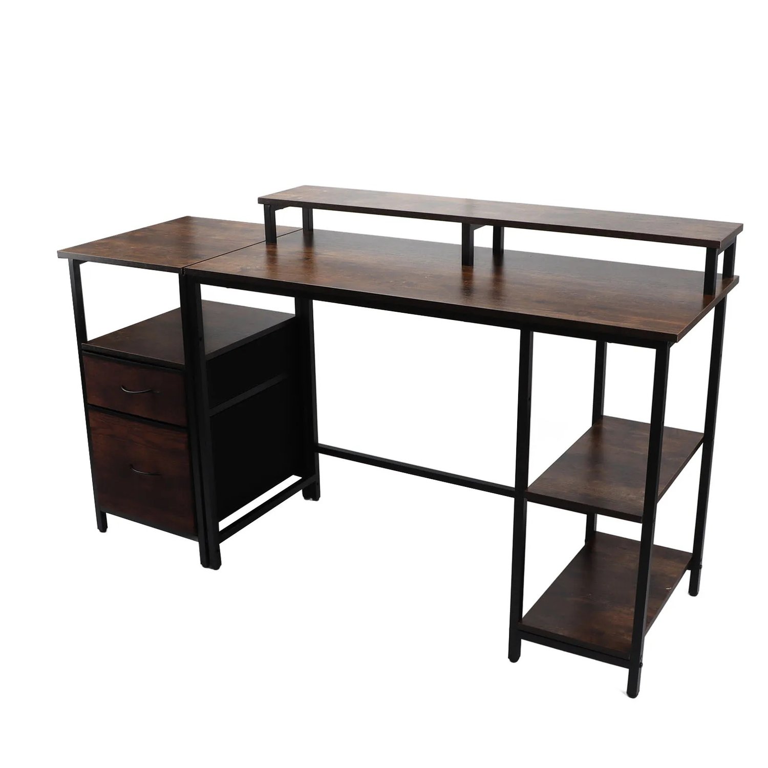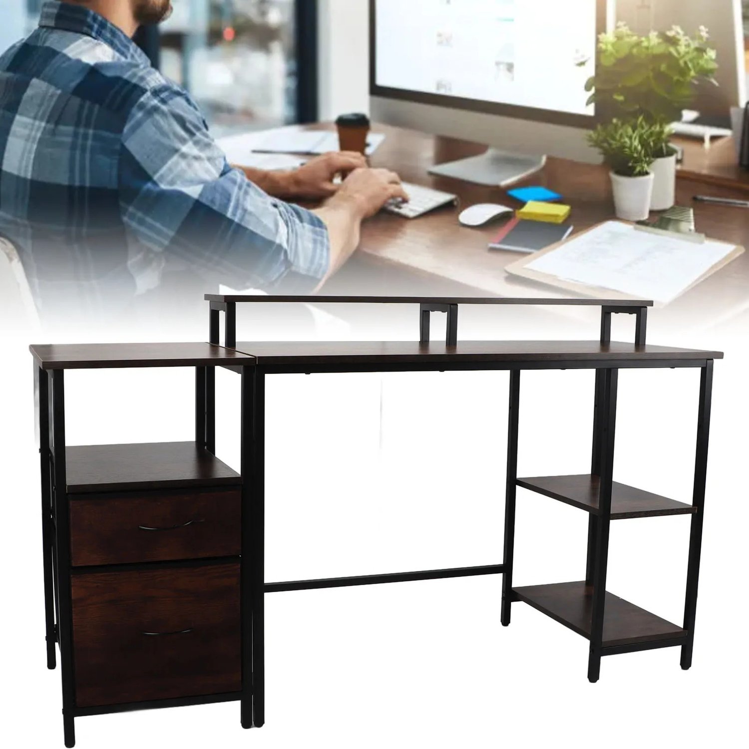 Home Computer Desk Large Desktop Space Industrial Computer Table Enough Drawers Sturdy with Raised Shelf for Office