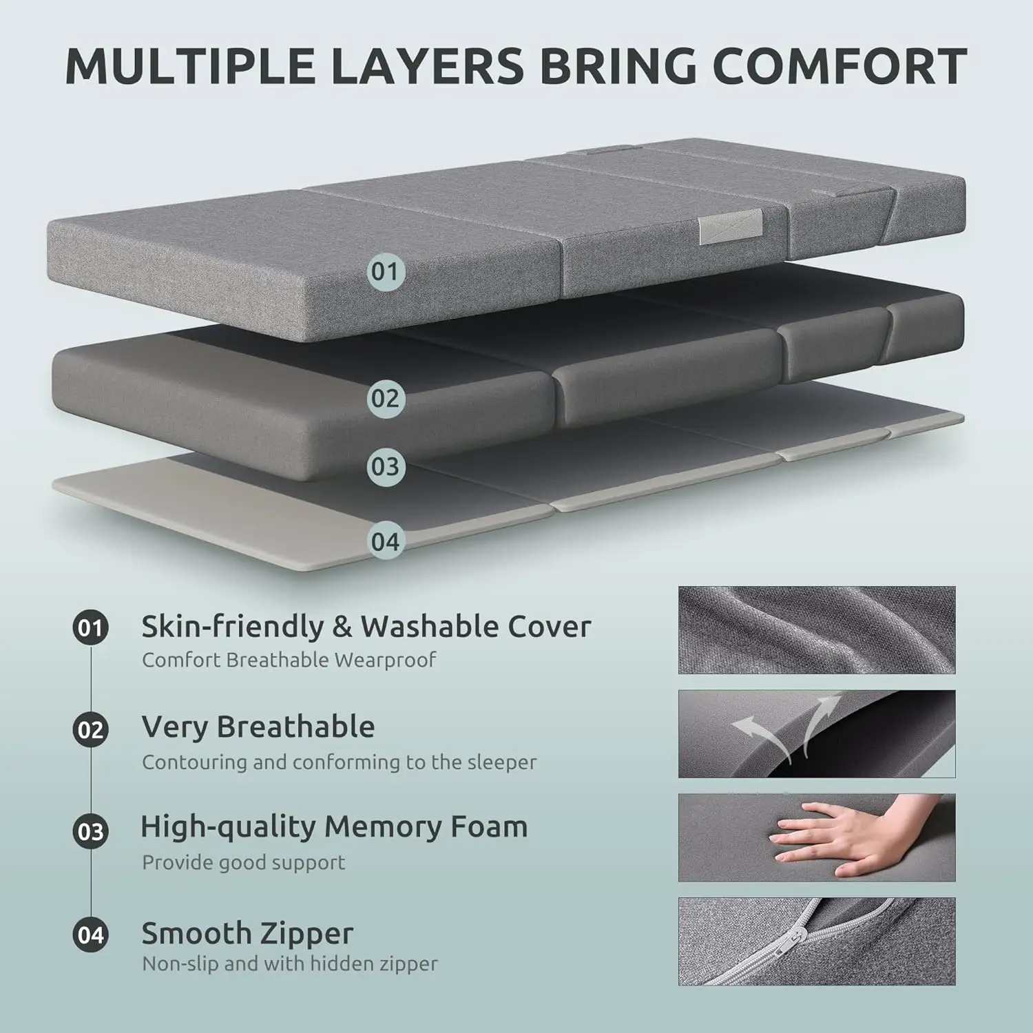 Folding Sofa Bed Single Foldable Sofas for Bedroom and Living Room 6 Inches Futon Couch for Guests Foldable Mattress with Breath