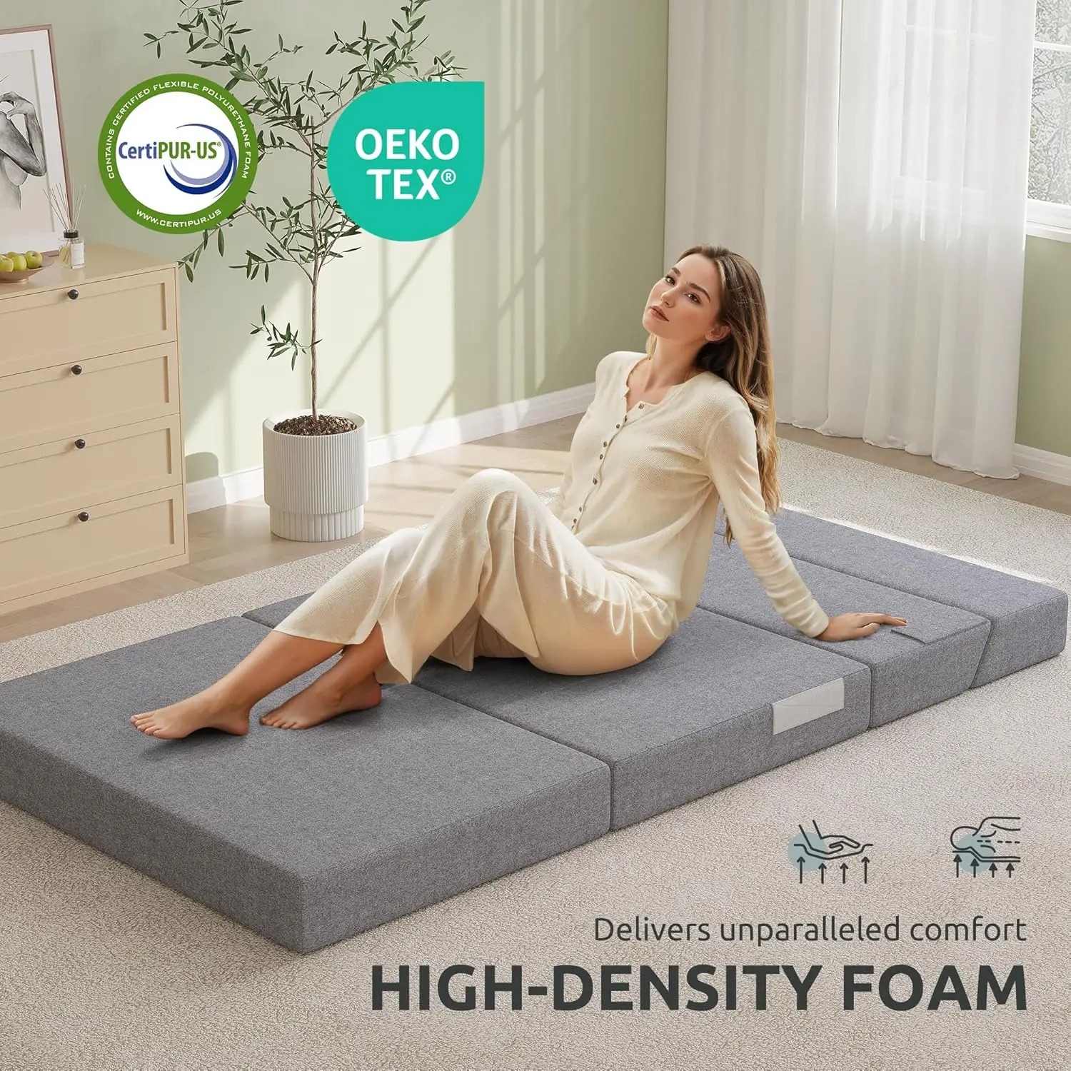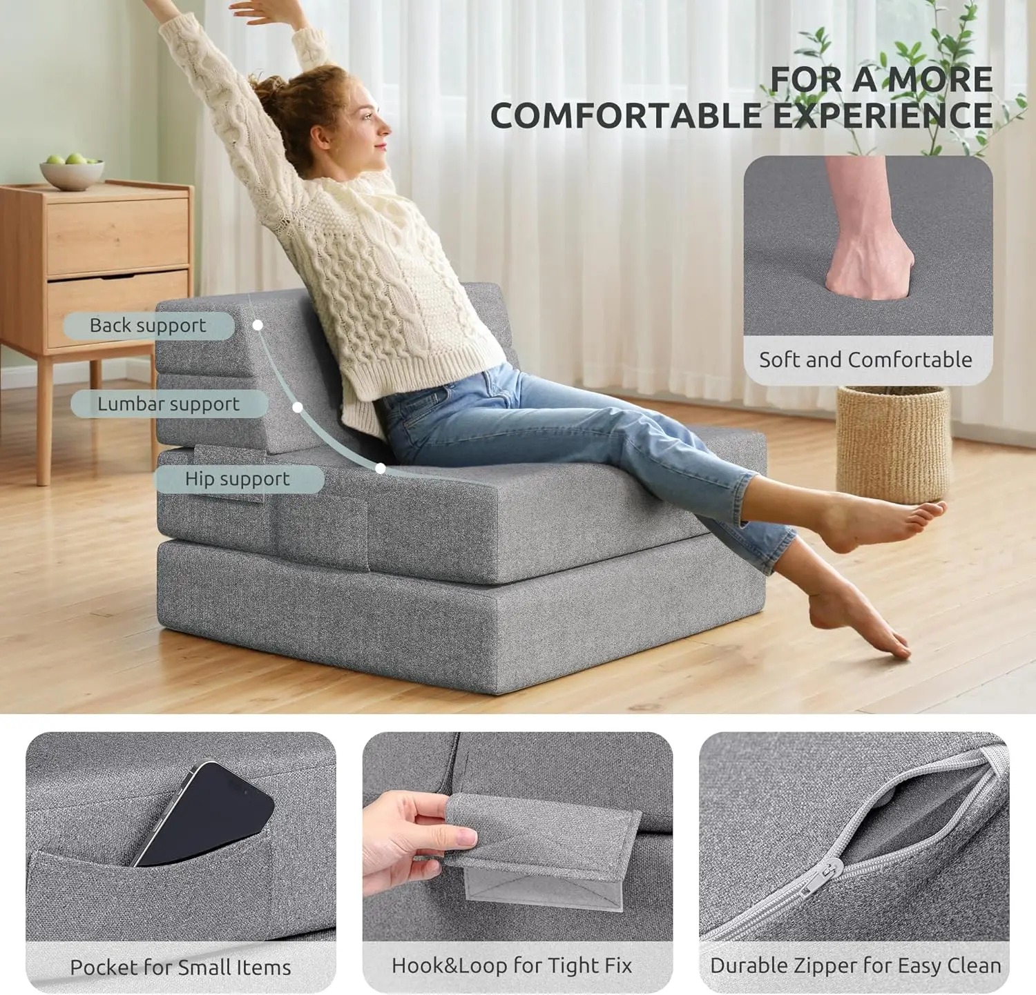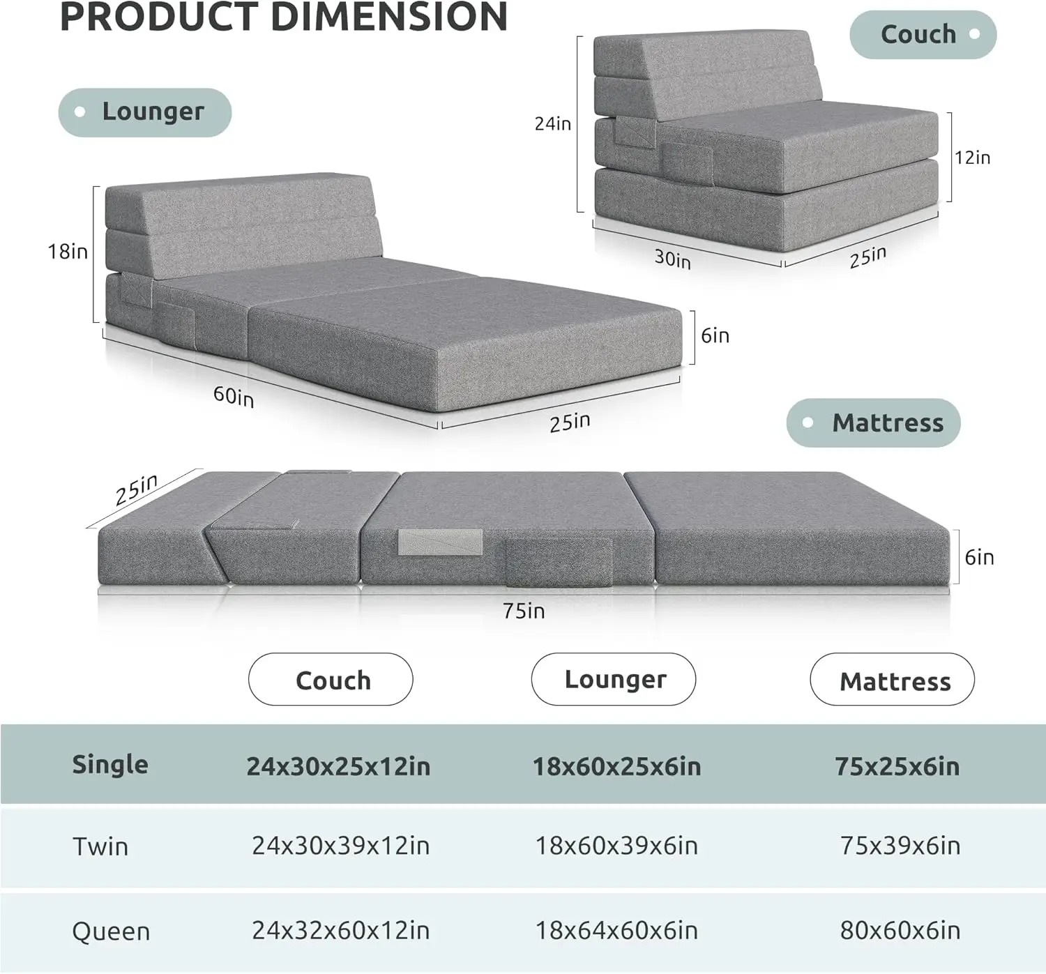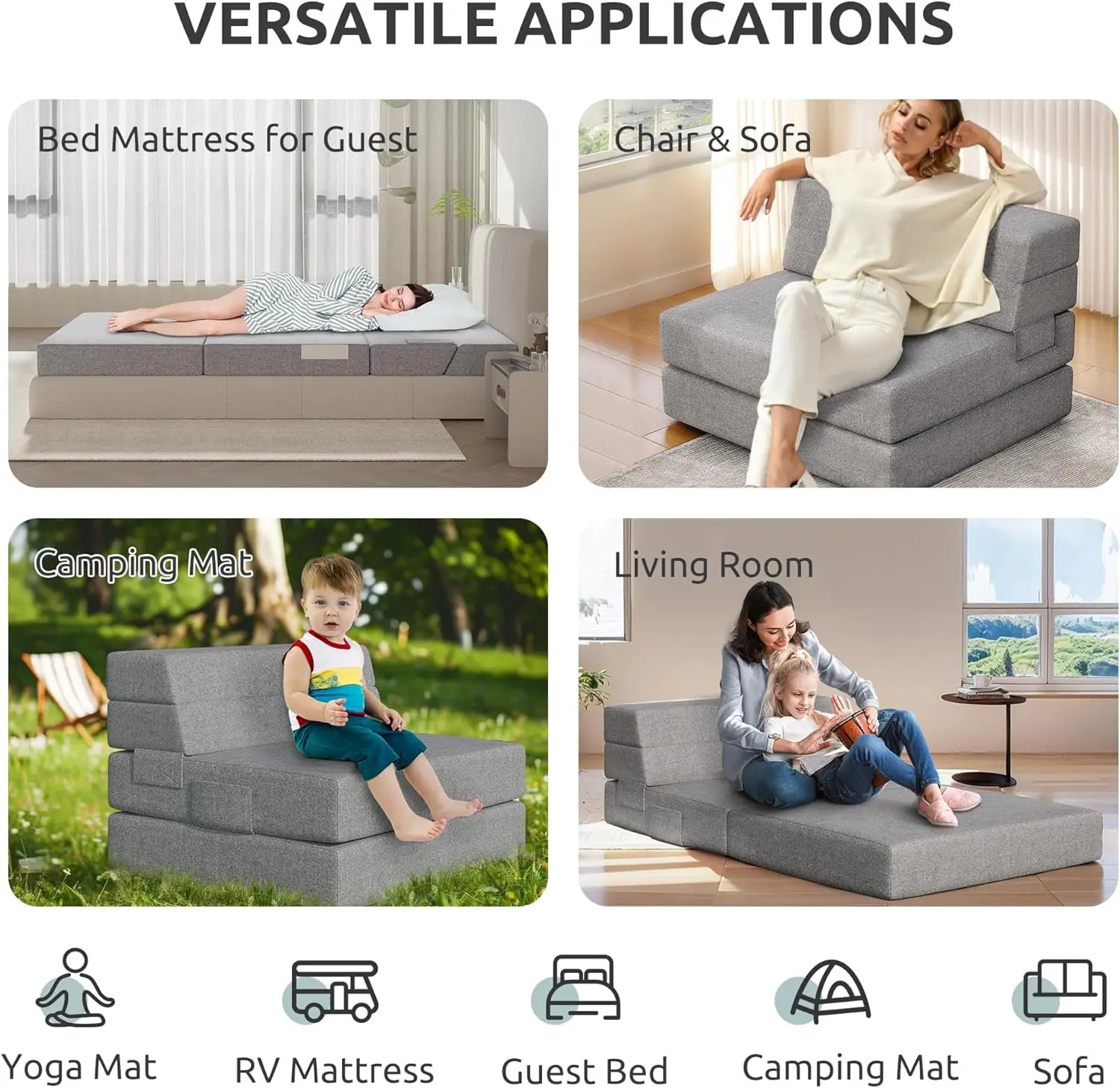 Versatile Foldable Sofa Bed: Folding sofa bed not only provide you with a comfort, but they can also seamlessly transition between a sofa and a bed, can be used as floor chair at parties, are also suitable for playing games, reading, or an extra foding bed for overnight guests, and the folding function allows you to easily carry and store it anywhere.