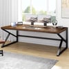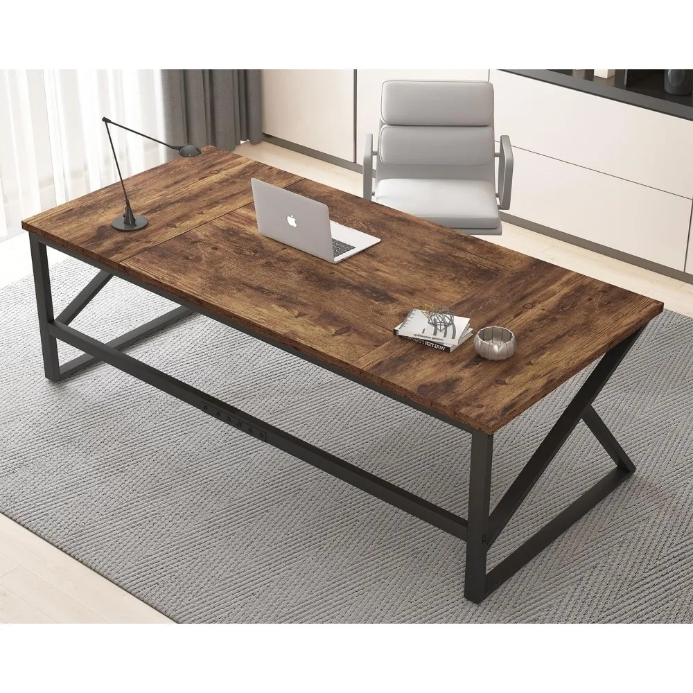 Elegant 70-inch dual-person rustic brown metal and wood home office desk for study and gaming