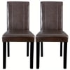 Dining Parson Chair Set of 2 Armless Kitchen Office Brown Leather Backrest Elegant