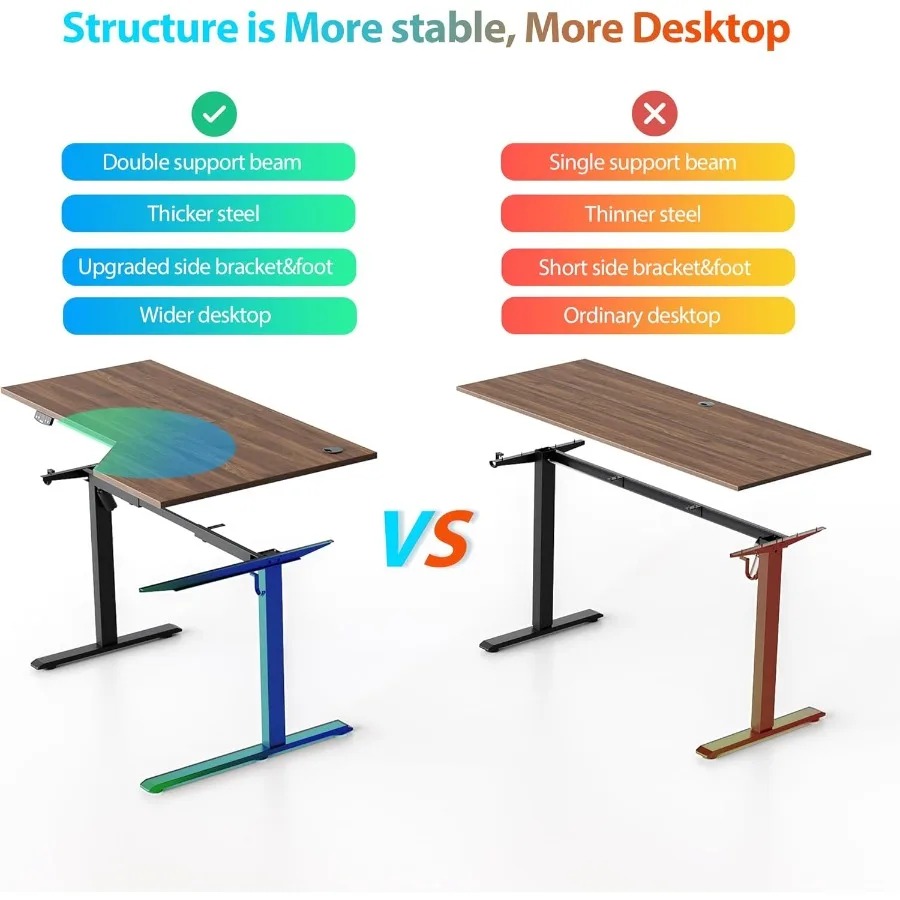 - 【Anti-Collision Technology】 The desk is designed with anti-collision technology, automatically moving 1 inch in the opposite direction if it encounters an obstacle, preventing potential damage or injury.