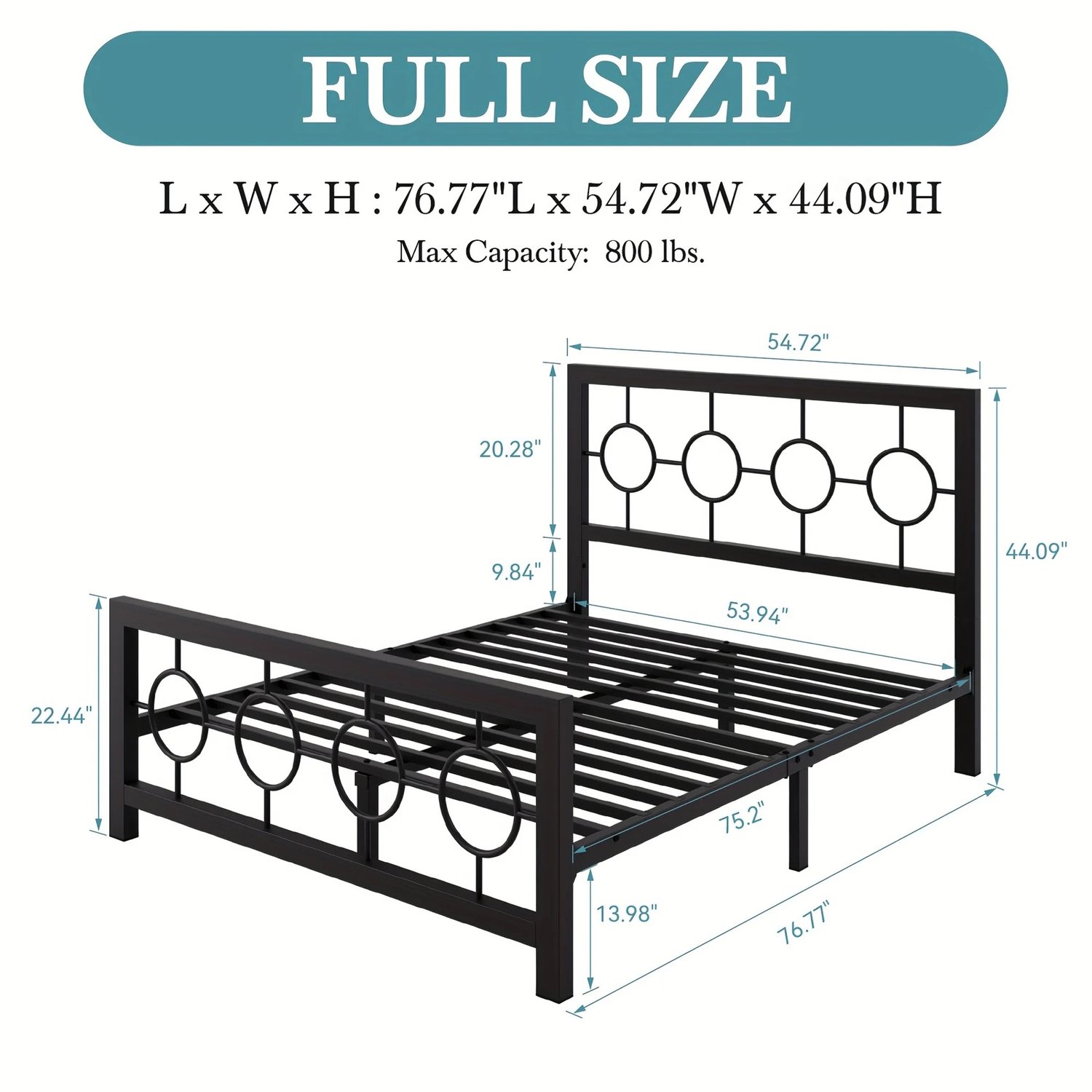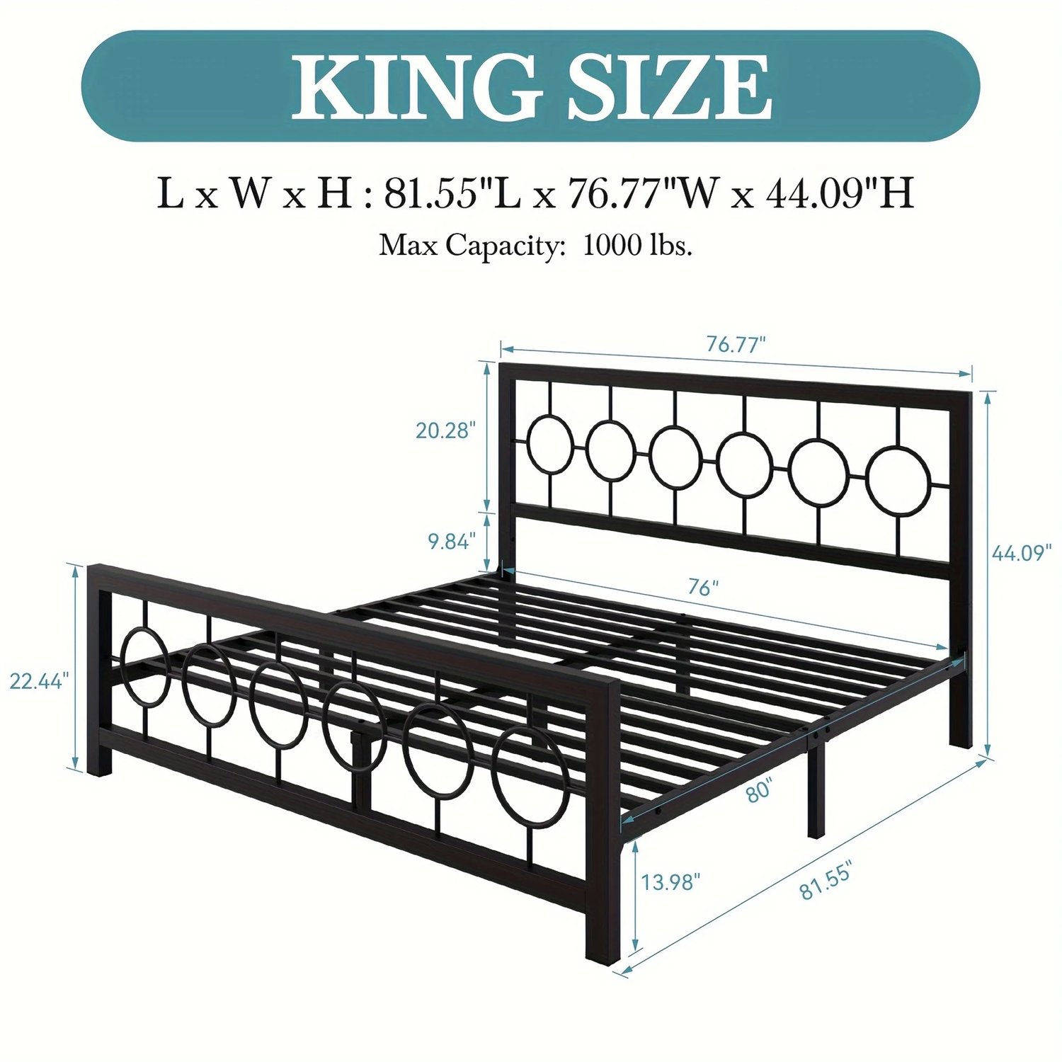 Metal Bed Frame with Vintage Circular Design Headboard and Footboard Metal Platform Bed Frame