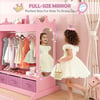 Kids Dresser with Mirror & Drawers, Pink Playroom Storage Armoire