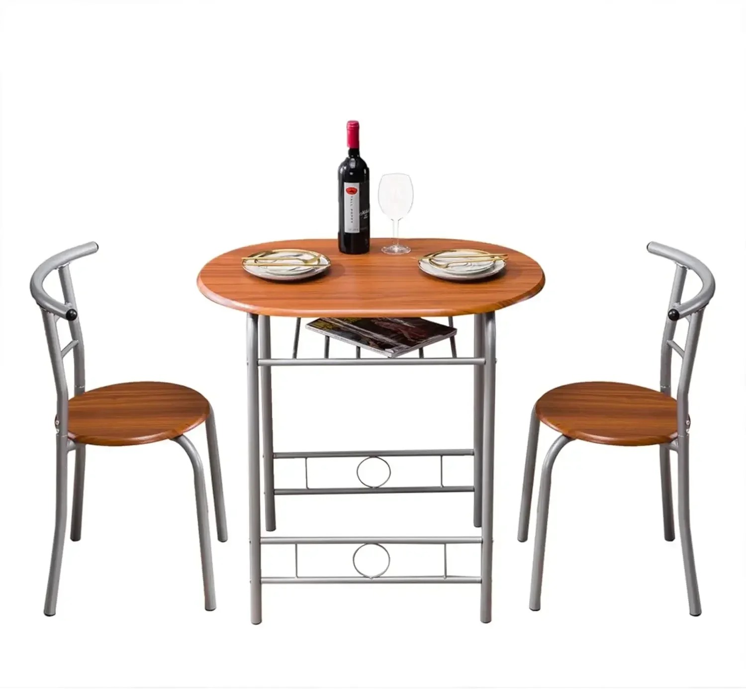 3-Piece Kitchen Dining Room Round Table And Chairs Set Storage Bistro Pub Breakfast Space Saving For Apartment And Kitchen