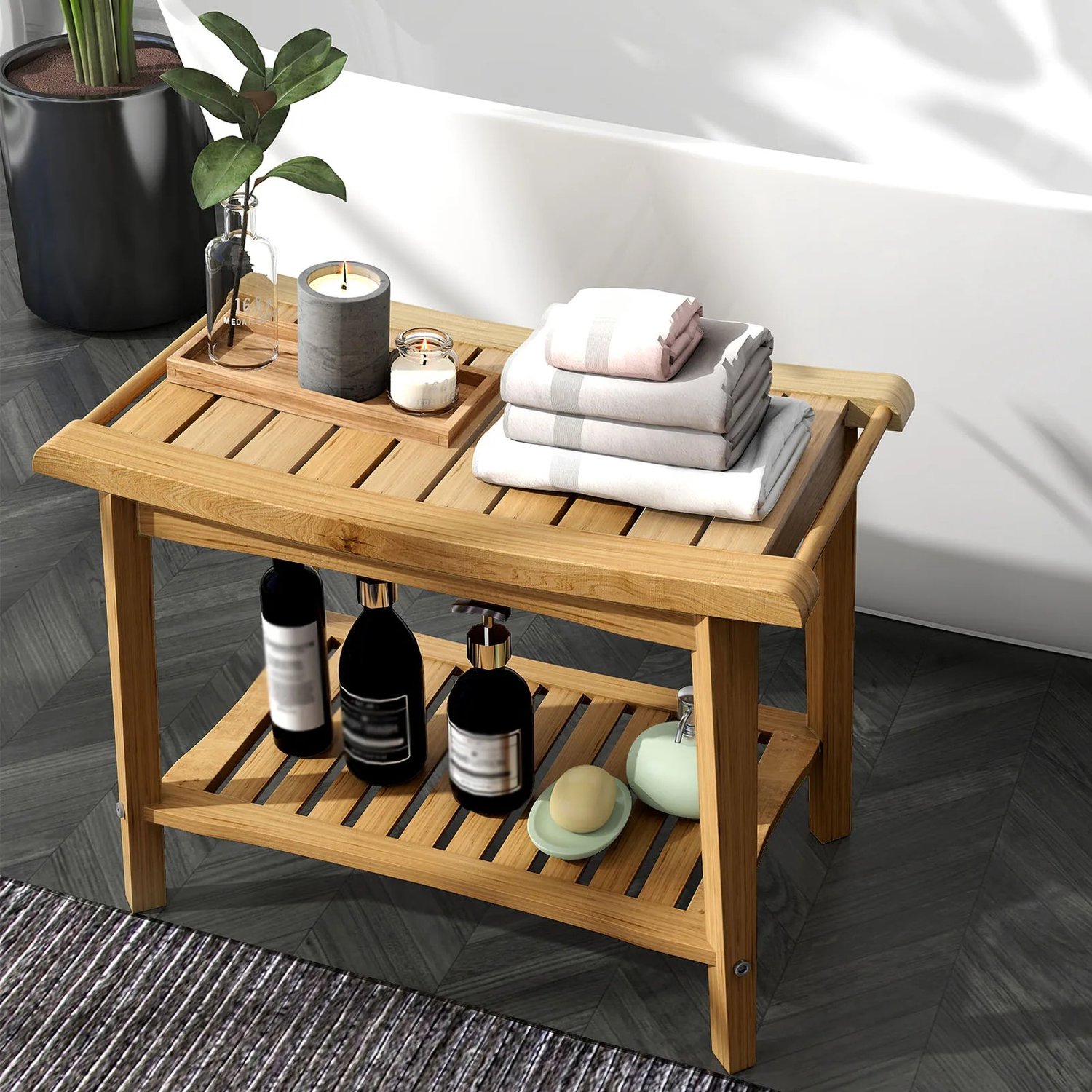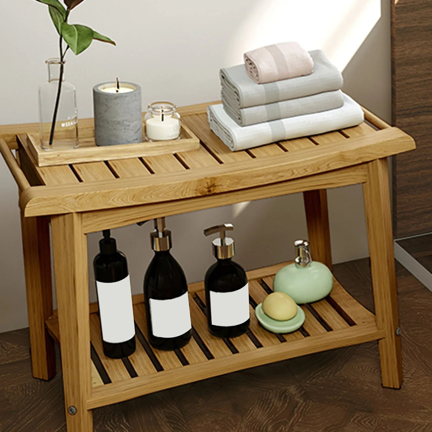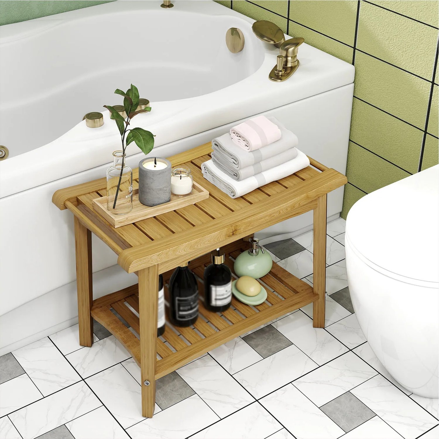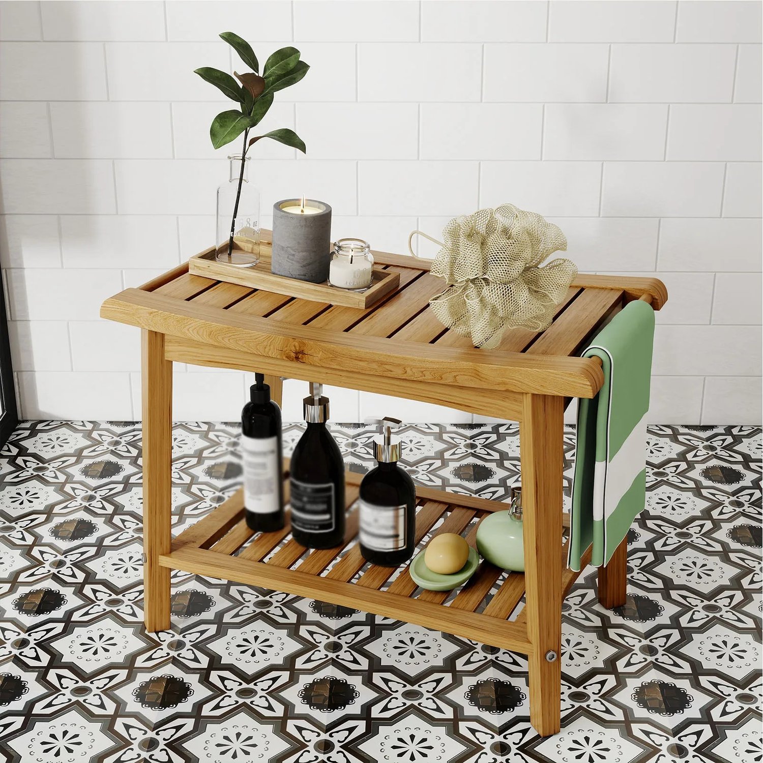 2. Convenient Storage Shelf: Equipped with a storage shelf underneath, this bench provides ample space for your bathing essentials, helping to save valuable cabinet space in your bathroom.