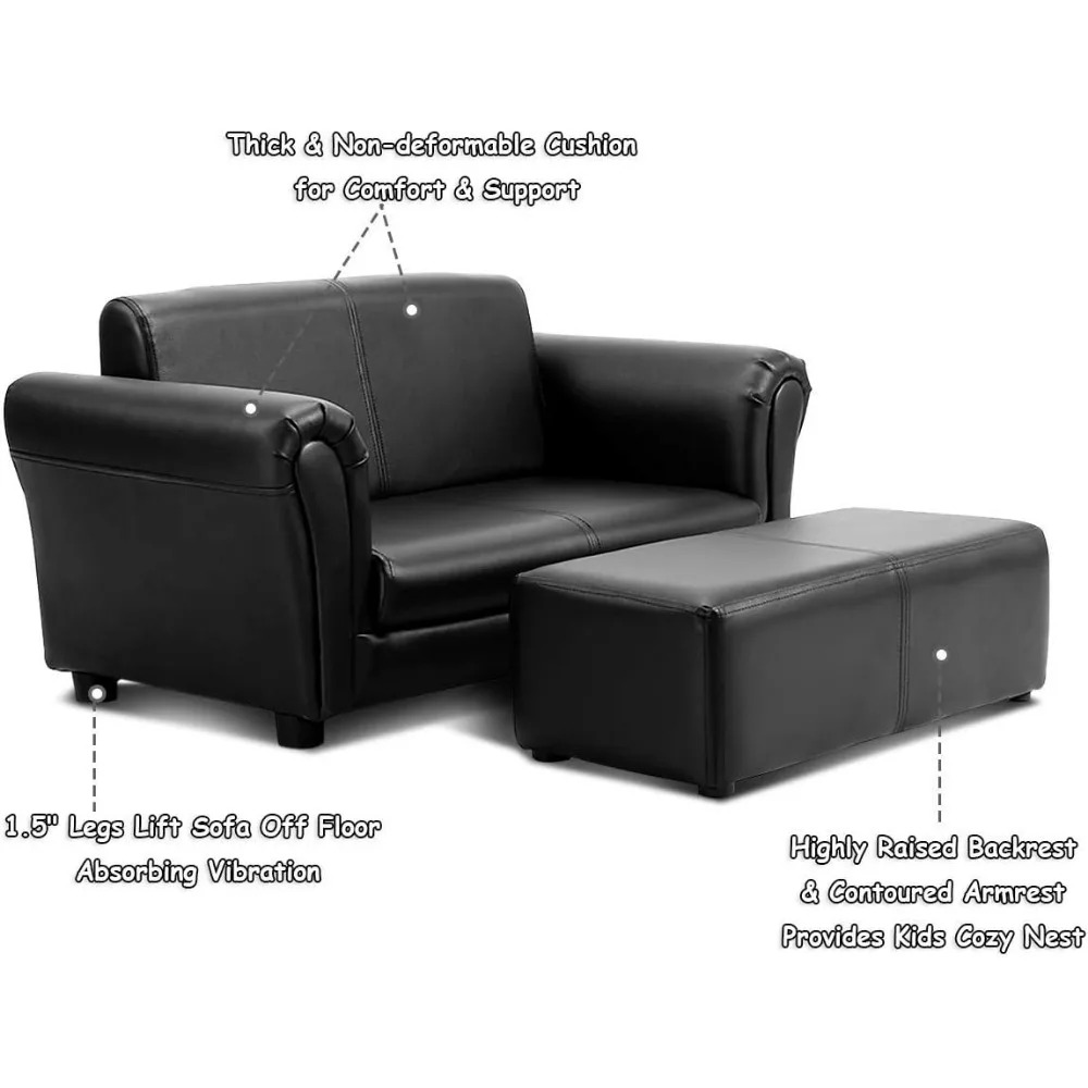 Two-in-One Children's Sofa with Footrest, Double Seat Couch in PU Leather, Armrest Lounge Chair, Soft Sofa for Kids