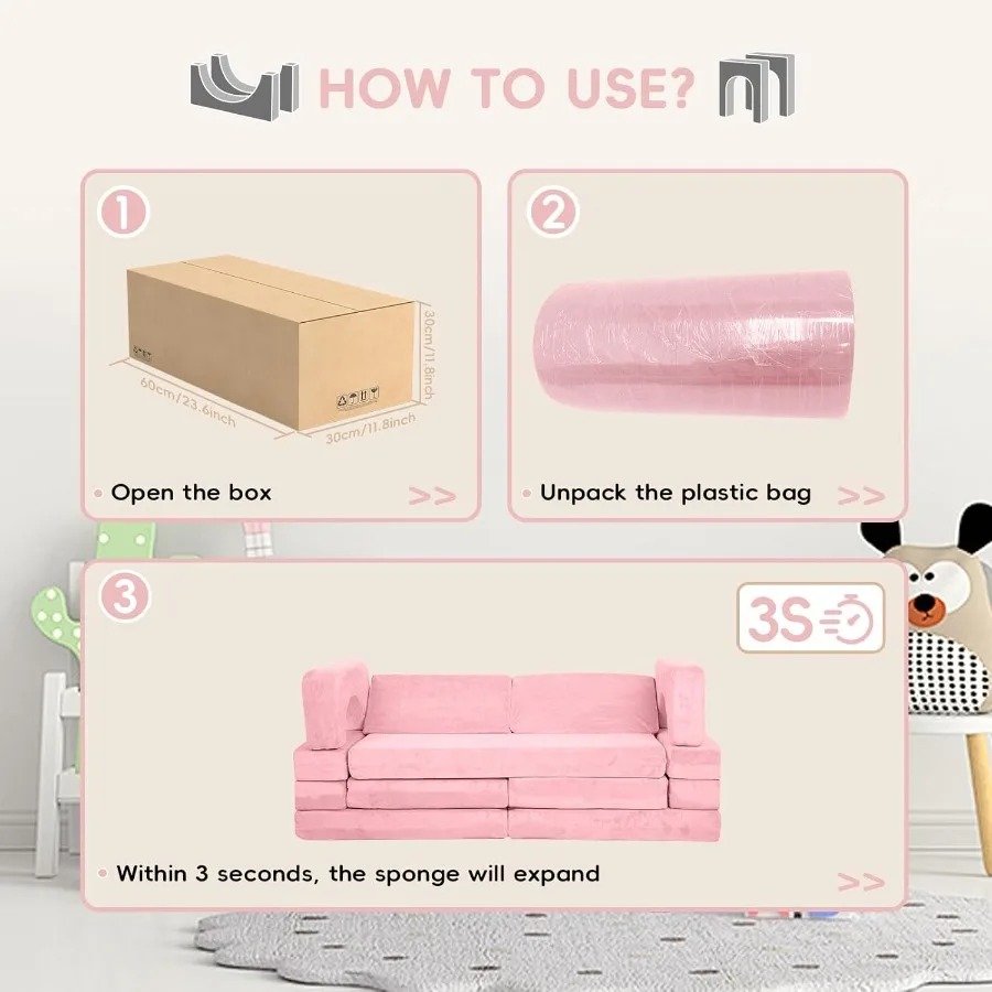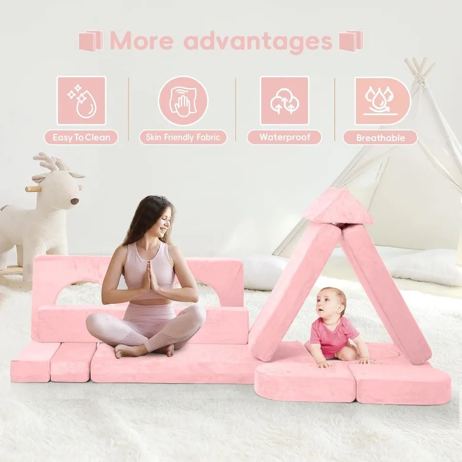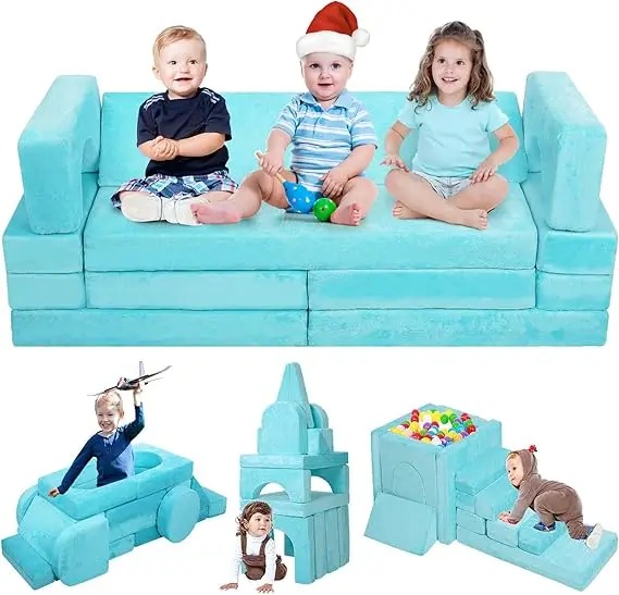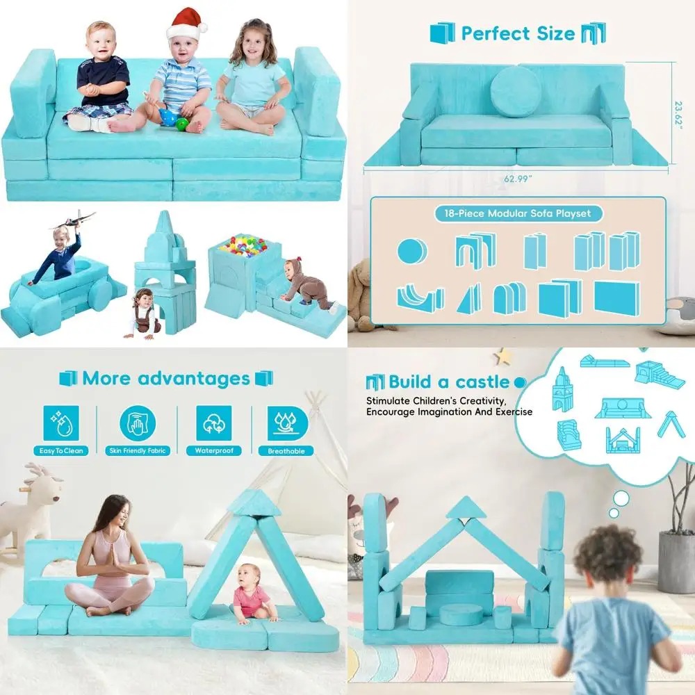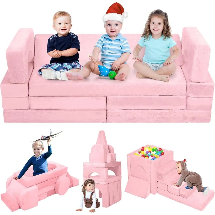 18PCS Modular Play Couch Convertible Sectional Sofa for Toddlers DIY Creative Playroom Furniture with Foam Floor Cushions Ideal