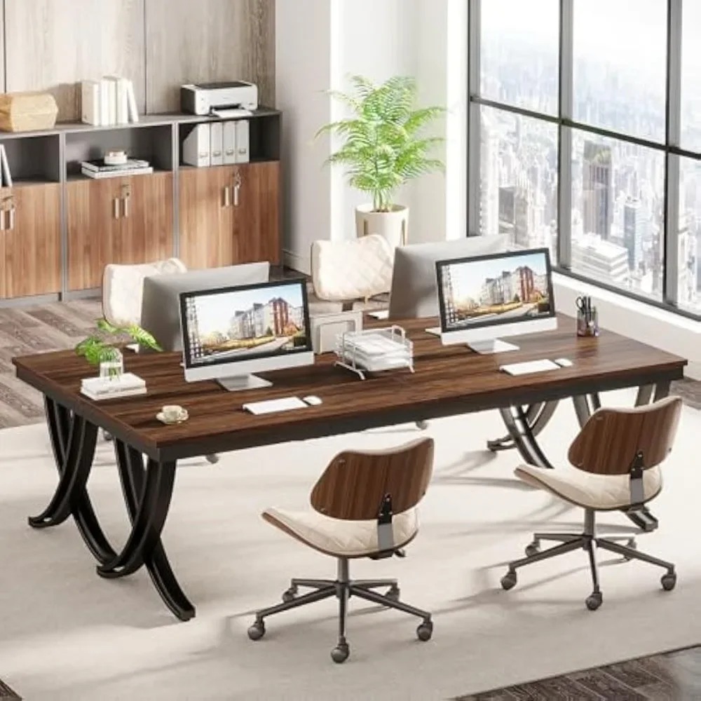 Rectangular Conference Table Seats 6-8, Metal Frame, Business Seminar Furniture, Durable for Meetings