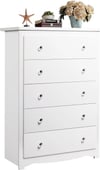 White 5 Drawer Wood Dresser, Wooden Chest of Drawers for Bedroom, Storage Cabinet and Organizer Drawers for Living Room, Hallway