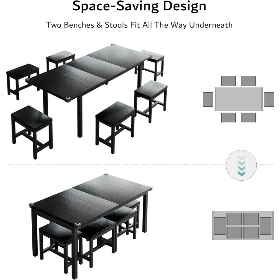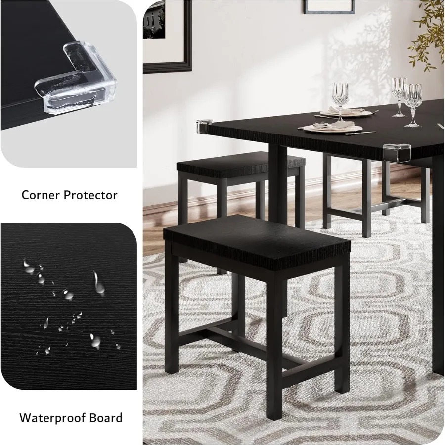 - Space-Saving Design: The kitchen table with stools set expands quickly when you have guests. Extra seats tuck under the table when not in use, so they don't take up too much room space. Ideal for apartments, small dining areas, or cozy homes