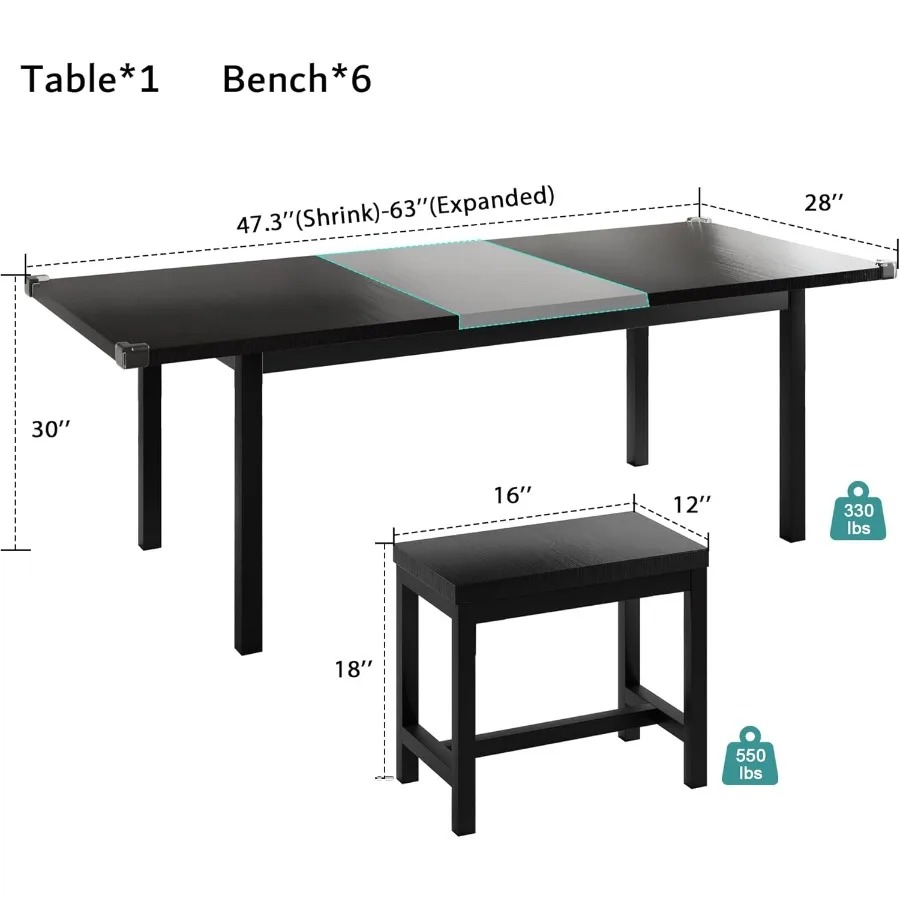 iPormis 7 Piece Dining Table Set with 6 Stools 63 Extendable Kitchen Table Set for 48 Modern Dining Room Table with Sturdy Metal