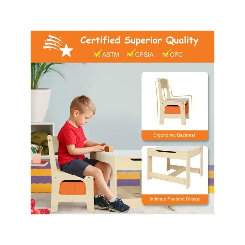 This children's wooden table and chair set with two storage bags is the perfect size for kids to eat, read, color, do arts and crafts, play board games, and simply have fun. The table and chair set is ideal for your little one's bedroom, playroom, or living room. This furniture is easy to assemble, and the sturdy table and chairs are perfect for children aged three to eight. The engineered wood construction of this table and chair set provides strong support and long-lasting durability. The height of this furniture is perfect for toddlers and preschoolers. Giving your little one a table and chair set that's just their size gives them a sense of control and helps them learn independence.