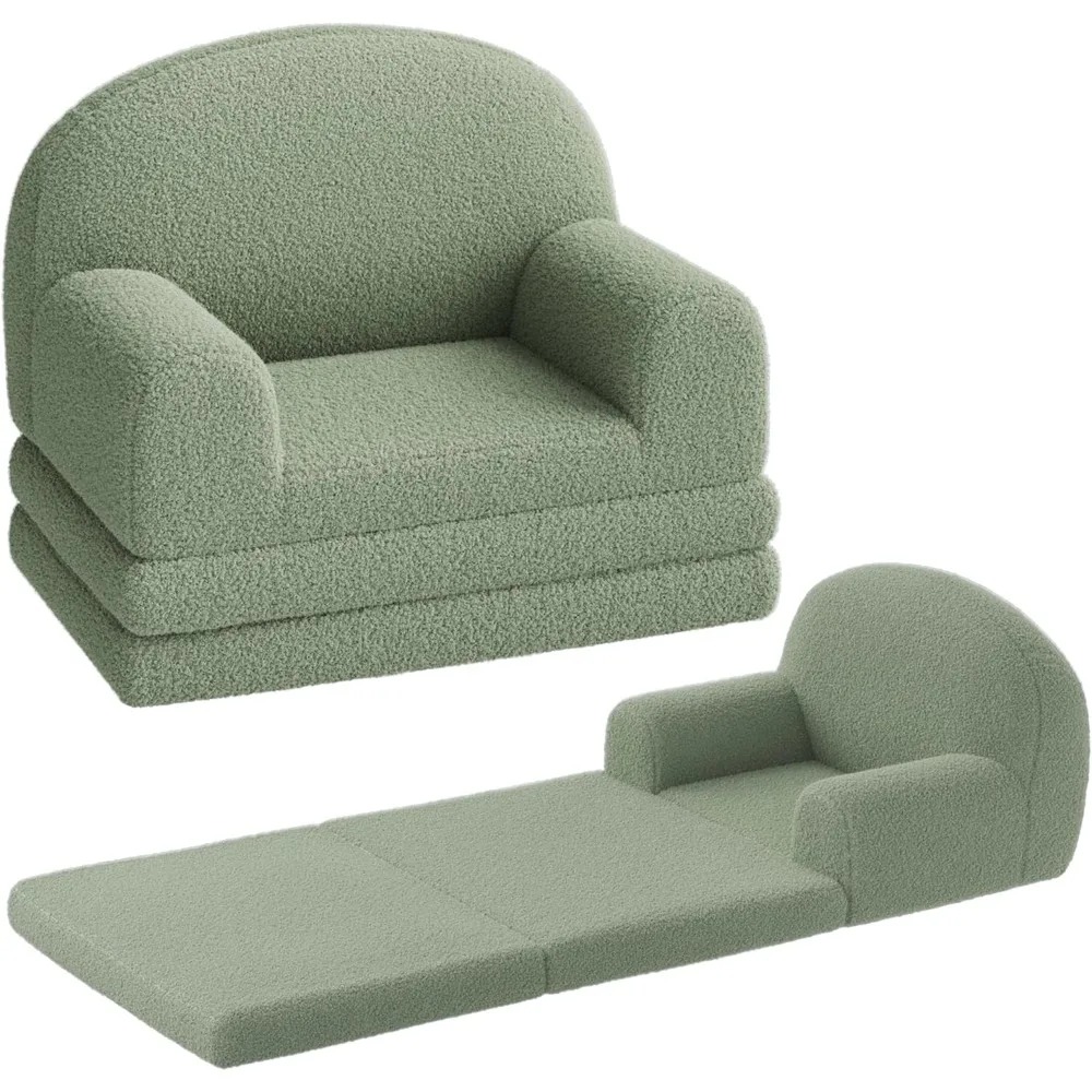 Convertible Toddler Sofa with Sherpa Cover: Foldable Lounger Foam Chair for Kids